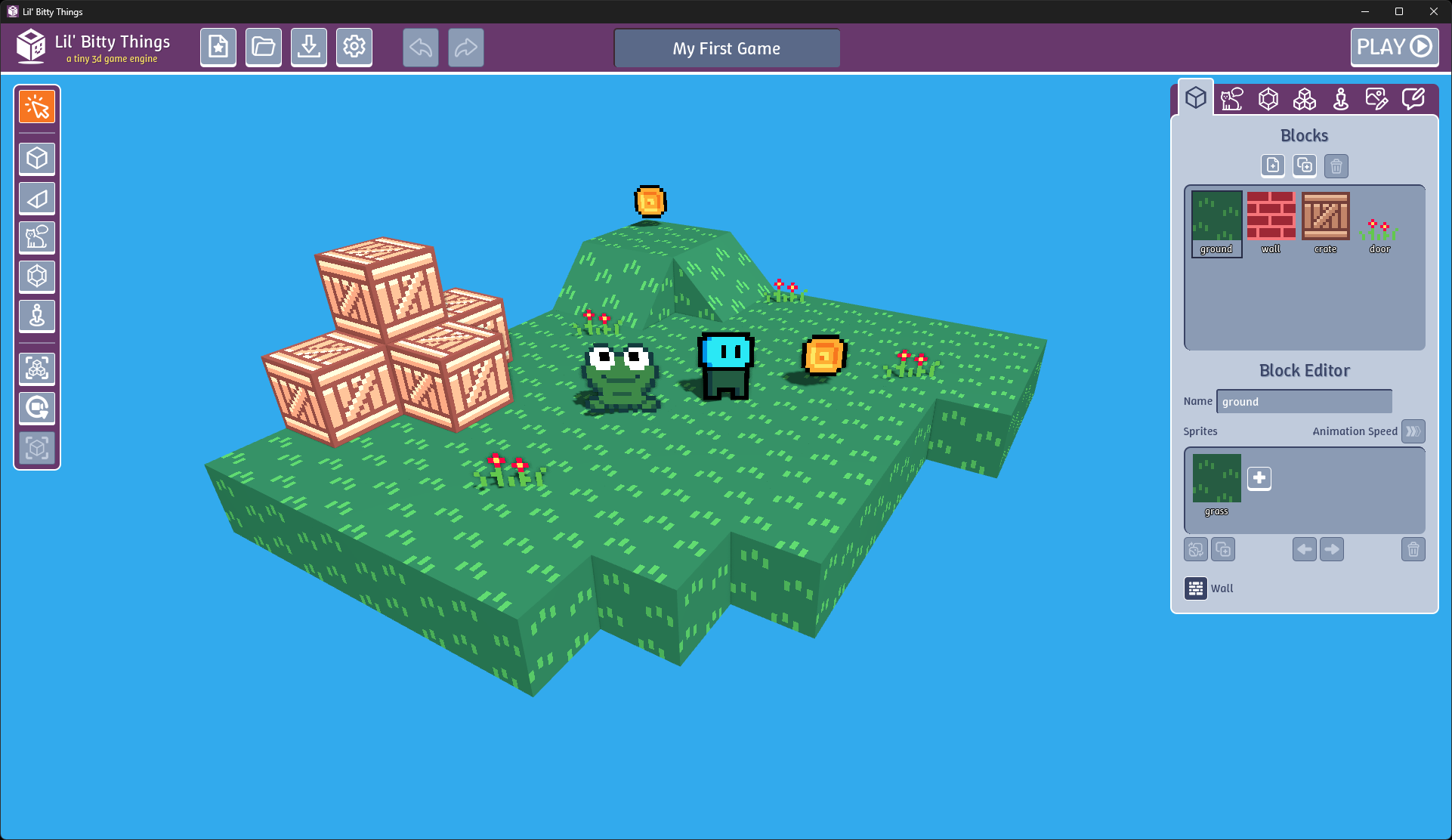 Hello! Lil' Bitty Things is a tiny 3d game engine for making small 3d games, stories, adventures, and more. I hope you enjoy using it as much as I enjoyed making it.